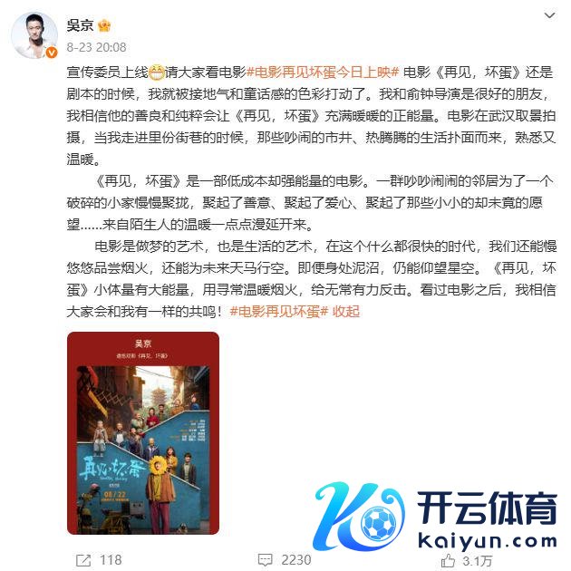 8月23日,吴京曾在微博发文为该部电影作念宣传。