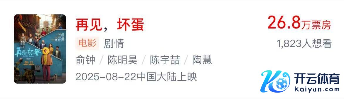 灯塔专科版数据显露,电影《再见,坏东西》已于8月22日上映,上映6天,票房仅有26.8万元。