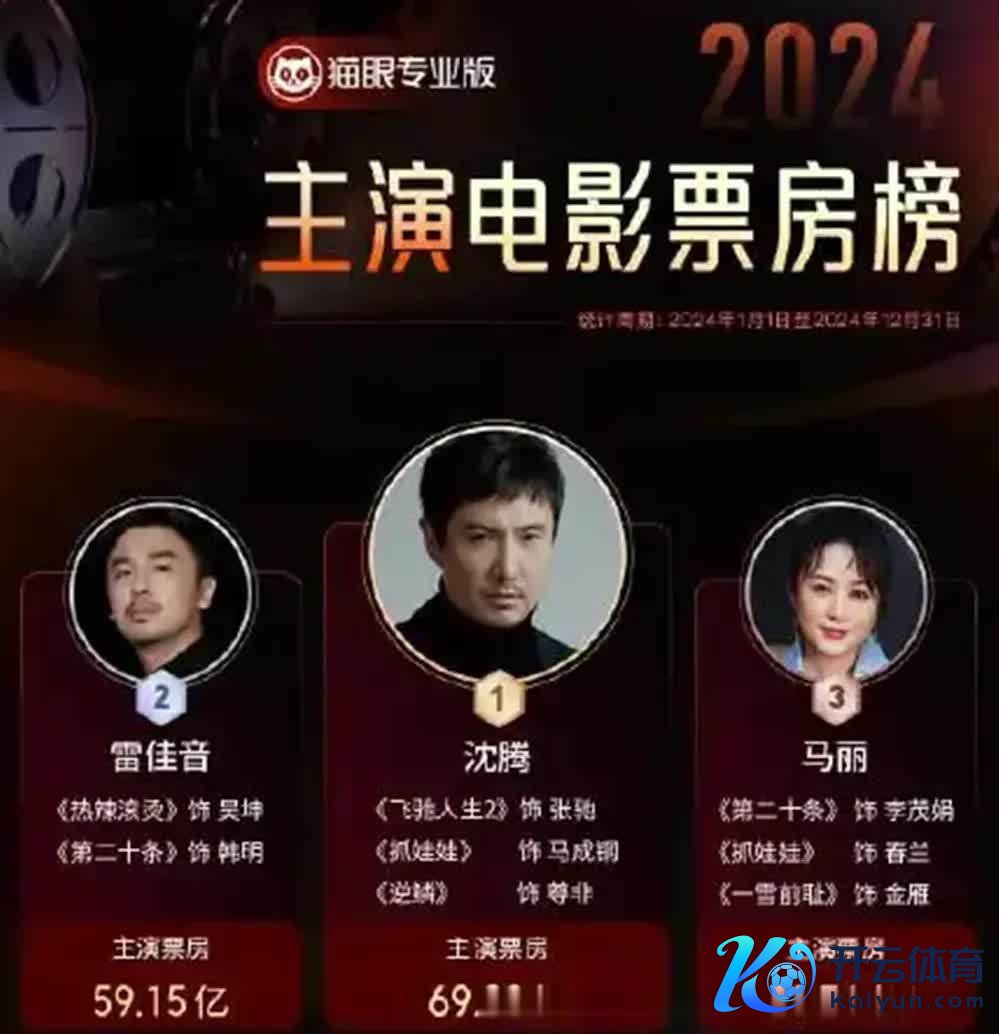 同期,雷捷报尽头能扛票房,票房敕令力惊东说念主。据统计,2024年国内主演电影票房榜单上,雷捷报和沈腾、马丽同入前三,雷捷报仅次于沈腾,以两部电影主演票房59.15亿排在第二位。