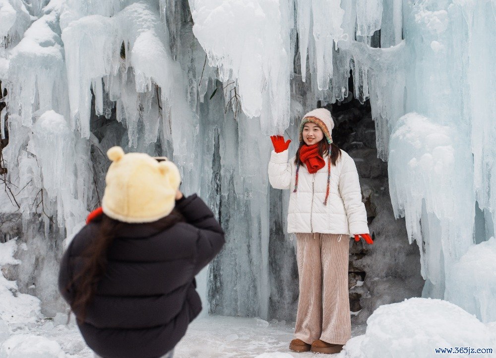 ▲2025年1月14日,南川区金佛山,旅客在冰窟打卡拍照。记者 李雨恒 摄