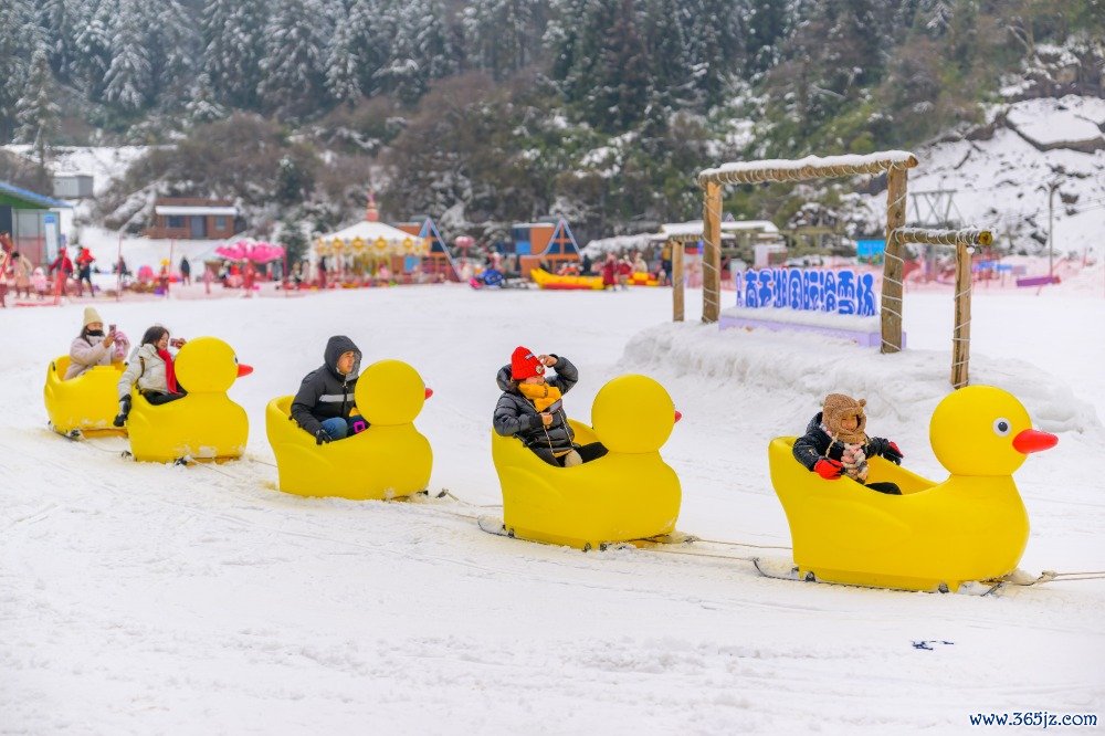 ▲2025年1月16日,丰齐县南天湖国外滑雪场,旅客们在体验“雪地小黄鸭”技俩。