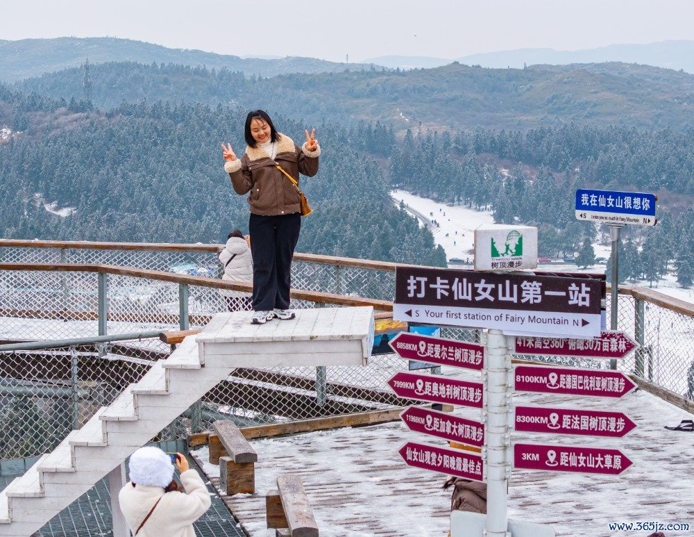 ▲2025年1月15日,武隆区青娥山国度丛林公园,旅客在“树顶散步”拍照打卡。