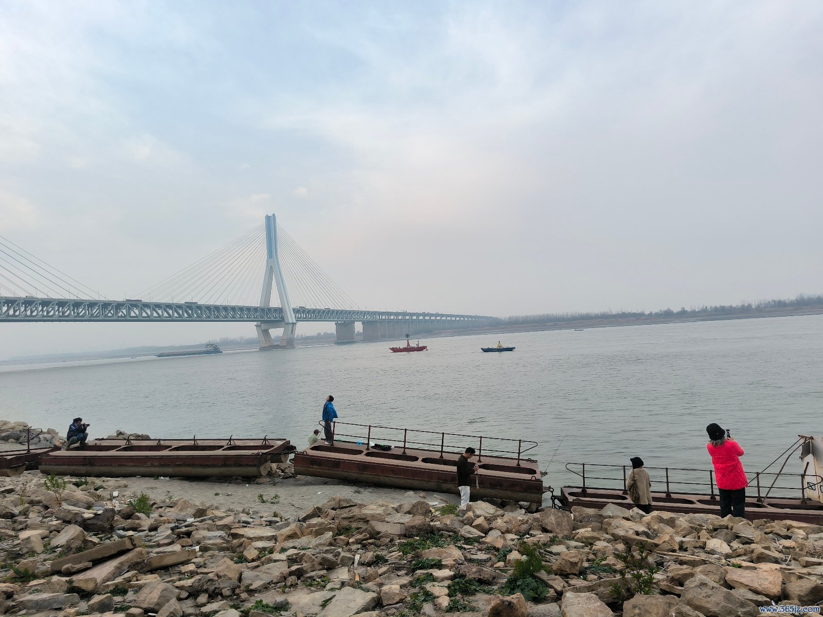 1月22日,九派新闻记者探访青山江滩时发现,这条铁制的浮桥和辽远静止的船只依然锈迹斑驳。浮桥长度约800米,仿佛为长江铺上了一条别具一格的小路,它蔓延至江中,把江面一分为二,成为通盘私有的景不雅。