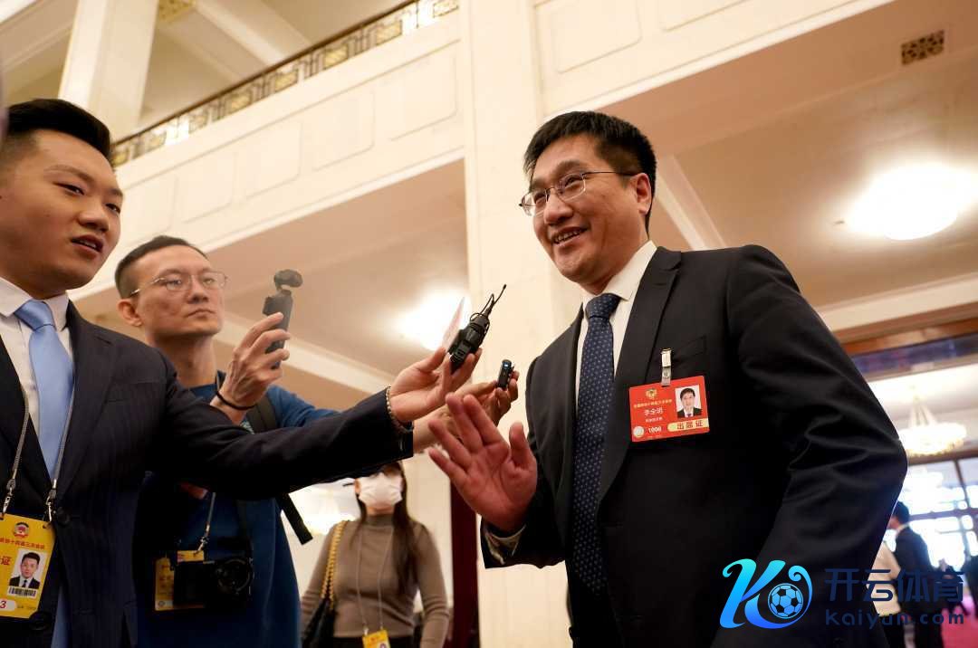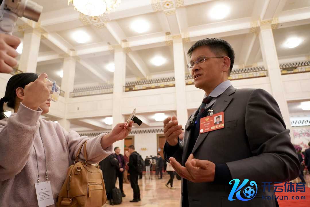 3月4日尊龙体育网,世界政协十四届三次会议在北京东谈主民大礼堂举行开幕会。图为科学技巧界李全明委员(右)会前摄取记者采访。经济日报记者 赵晶 摄