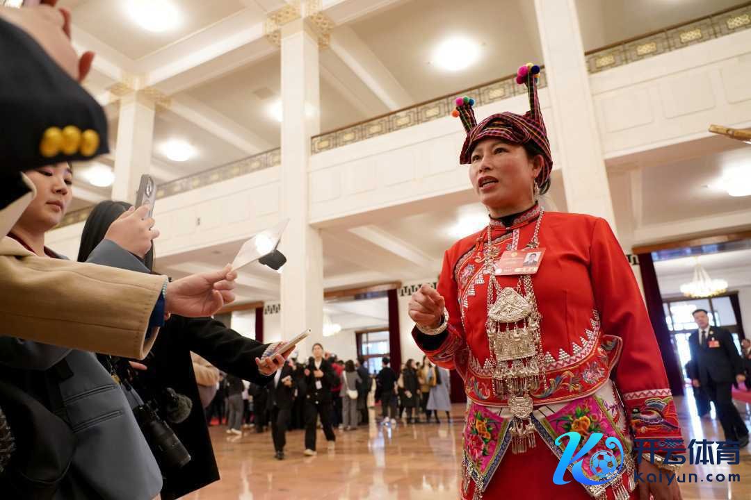 3月4日,世界政协十四届三次会议在北京东谈主民大礼堂举行开幕会。图为文化艺术界戴斌委员(中)会前摄取记者采访。经济日报记者 赵晶 摄
