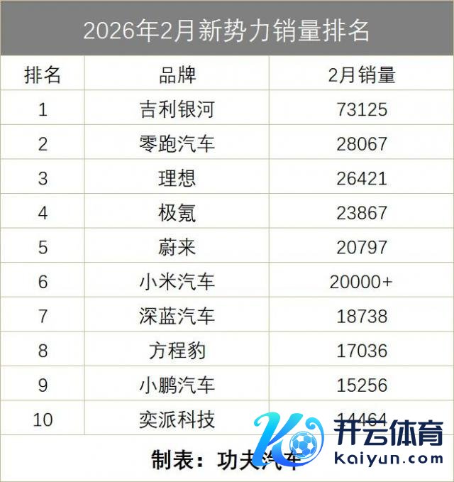 3 月 1 日,各大新能源品牌按期公布了 2026 年 2 月的销量数据。