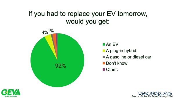 该论说网罗了来自18个国度(包括好意思国、巴西和欧洲主要市集)的23,000名电动汽车车主的响应,发现92%的受访者默示他们下次购买汽车时会坚执选拔电动汽车。在那些不会再次选拔纯电动汽车的东谈主中,惟有1%的东谈主会再行选拔汽油或柴油,4%的东谈主会选拔插电式搀杂能源汽车。