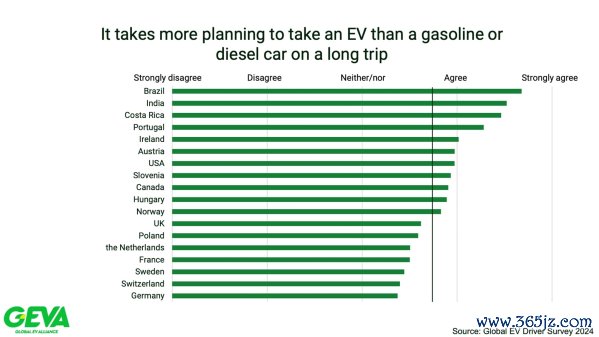 巴西的电动汽车司机热烈开心这么的不雅点,即乘坐电动汽车进行资料旅行比乘坐内燃机汽车需要更多的策动,而来自德国、瑞士和瑞典的受访者则以为莫得太大互异。对于里程紧张,印度和巴西的电动汽车司机受到的影响最大,而德国和瑞士的司机则默示这不是问题。意旨的是,挪威电动汽车驾驶员的里程紧张进度高于平均水平。