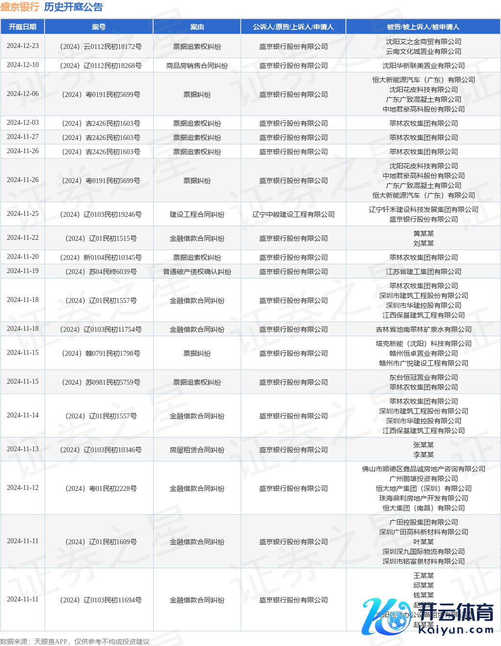 本站音书,阐明天眼查APP知道,近日公布了一则盛京银行股份有限公司当作原告/上诉东谈主的开庭公告凯时体育游戏app平台,提神本色如下: