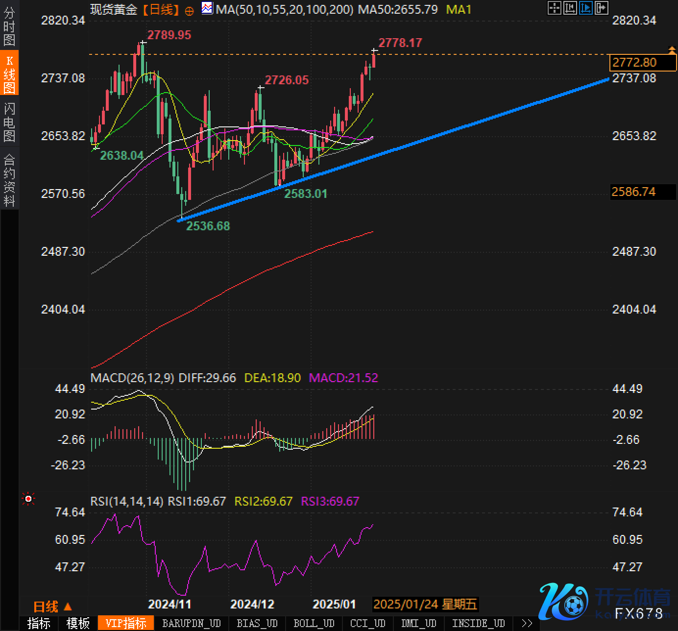 汇通财经APP讯——黄金价钱在特朗普言论和计谋影响下握续高涨,波及2778好意思元的近月新高。特朗普条目降息并加重保护想法计谋,激动资金流向黄金避险。本领面表示,短期赞助位在2760-2758好意思元尊龙体育网,阻力位在2790好意思元。黄金市集依然看涨,但需警惕本领性超买回调风险。
