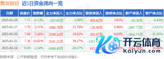 本站音信,截止2025年2月28日收盘,集友股份(603429)报收于7.75元,下降0.13%,换手率2.63%,成交量13.78万手,成交额1.06亿元。