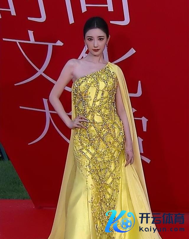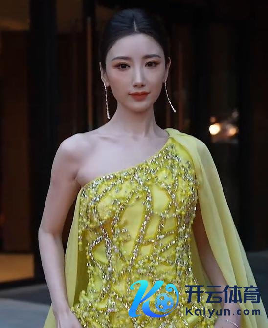 此次她打扮得极度丽都,前来赴会。
