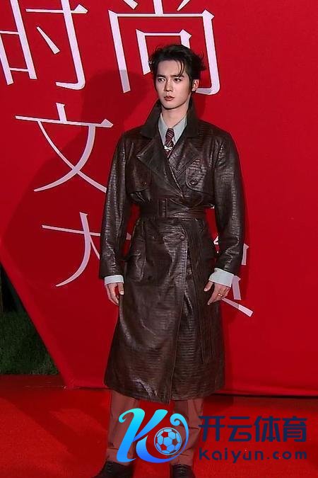 此次这身红棕颜色的维合手装饰,再搭上那双油光锃亮的黑皮鞋,真实酷毙了。