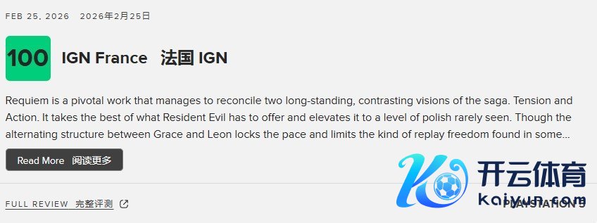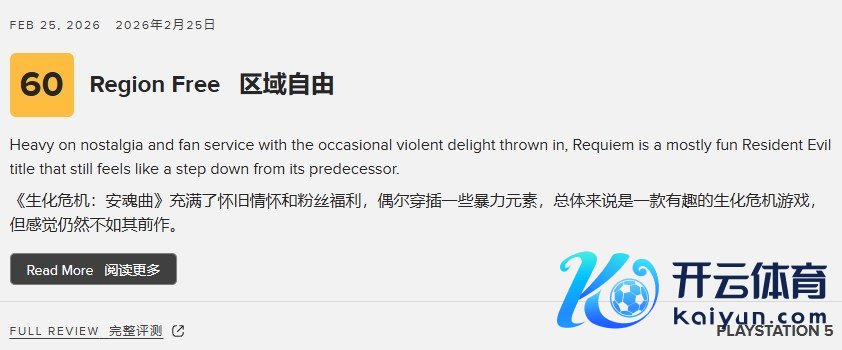 《生化危境》系列第九部正宗续作《生化危境:安魂曲》媒体评测于2月26日细腻解禁。本作在Metacritic平台PS5版平分达88分(110家媒体,96%好评),PC版更是斩获91分,成为自2005年《生化危境4》(96分)以来系列评分最高的干线续作。关联词在一派喝彩声中,一家树立仅6年的小众媒体却给出了刻下独一的差评,其私有的视角激发玩家社群深想。