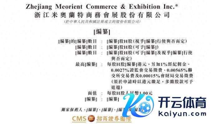 智通财经APP获悉尊龙体育网,据港交所12月24日败露,浙江米奥兰特商务会展股份有限公司(简称:米奥会展)向港交所主板递交上市肯求书,招商证券海外为其独家保荐东谈主。