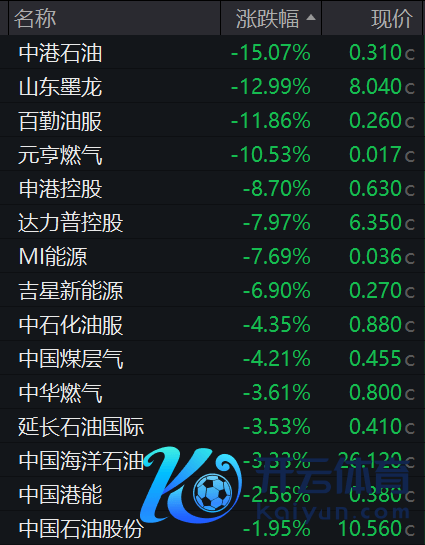 石油石化板块下落,中港石油跌超15%,山东墨龙跌近13%,百勤油服跌超11%,中石化油服跌超4%。